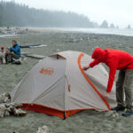 Tests des tentes de randonnée, bivouac, camping.
