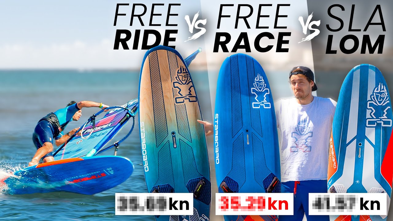 • + Plus rapide que la freeride (32 nœuds avec voile freerace, 34,29 avec voile slalom)